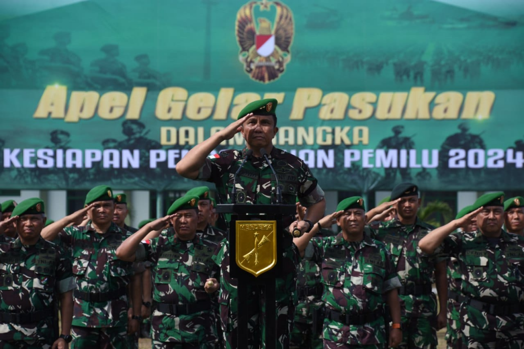 Apel gelar pasukan selesai, dilanjutkan laporan kesiapan pengamanan Pemilu 2024 tiap-tiap Panglima Kodam kepada Kasad.