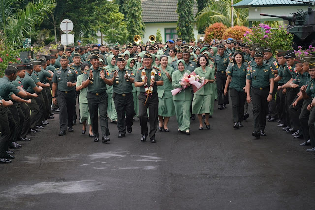 Setibanya di gerbang utama Kodam XIII/Merdeka Mayjen TNI Candra Wijaya, M.A., dan Ny Fenty Candra Wijaya, menerima pengalungan bunga berikut hand bouquet dari Kasdam XIII/Merdeka dan Wakil Ketua Persit KCK Daerah XIII/Merdeka.